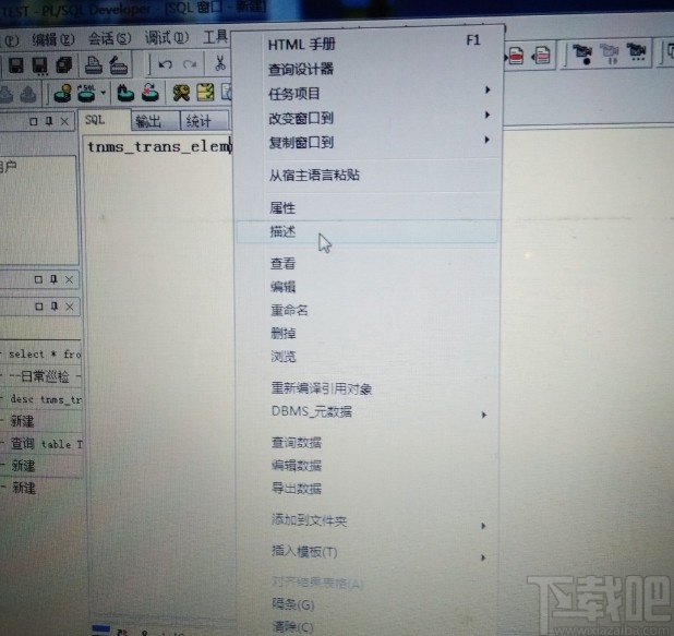 5.另外第四种方法和第三种方法相似,同样的使用鼠标右键点击表名称之后,在出现的列表选项中,是需要选择描述这个选项,点击查看描述之后可以查看表的字段详细信息。