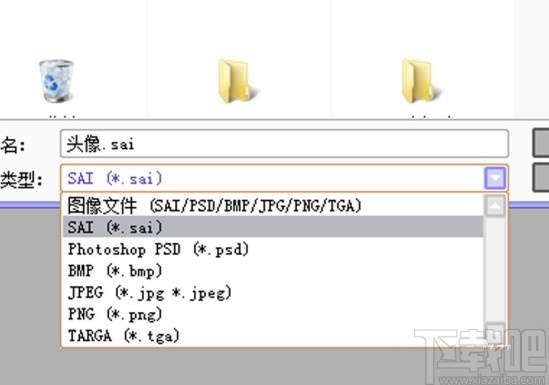 3.点击另存为之后出现一个保存文件的界面,我们可以看到界面中显示的文件类型是sai类型,然后我们需要点击这个文件类型选项。