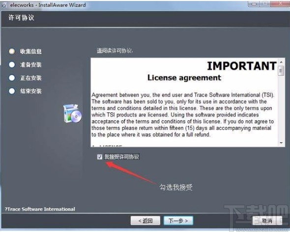 3.在许可协议页面中,我们在页面下方找到“我接受许可协议”选项,勾选该选项,再点击底部的“下一步”按钮即可。