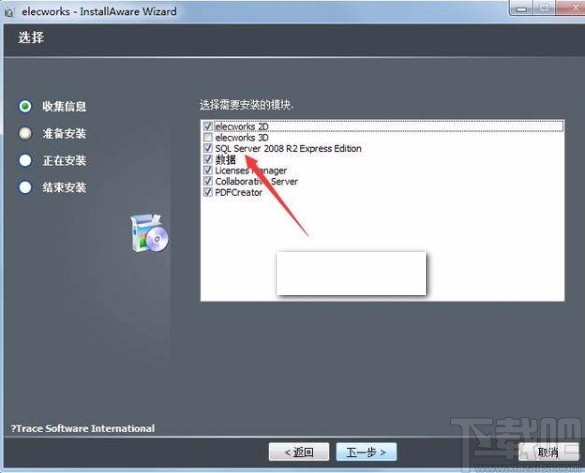 5.在安装模块选择页面中,我们根据自己的需要勾选安装模块,再点击页面底部的“下一步”按钮进入到安装路径设置页面。