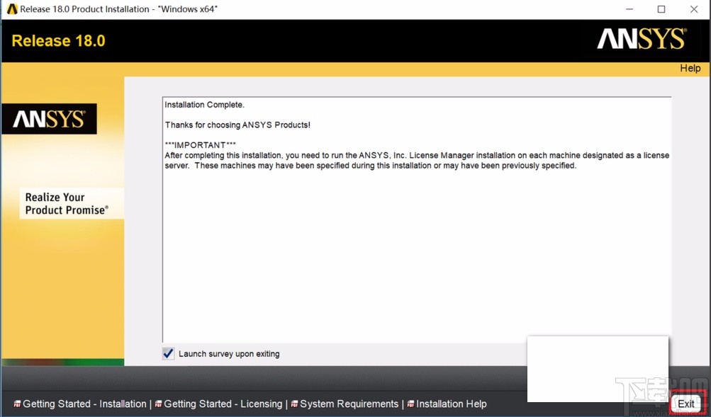 8.软件安装结束后,我们在界面上可以查看到“Installation Complete”的提示字样,表示安装结束的意思;我们点击页面右下角的“Exit”按钮就可以完成软件安装的全部操作步骤。