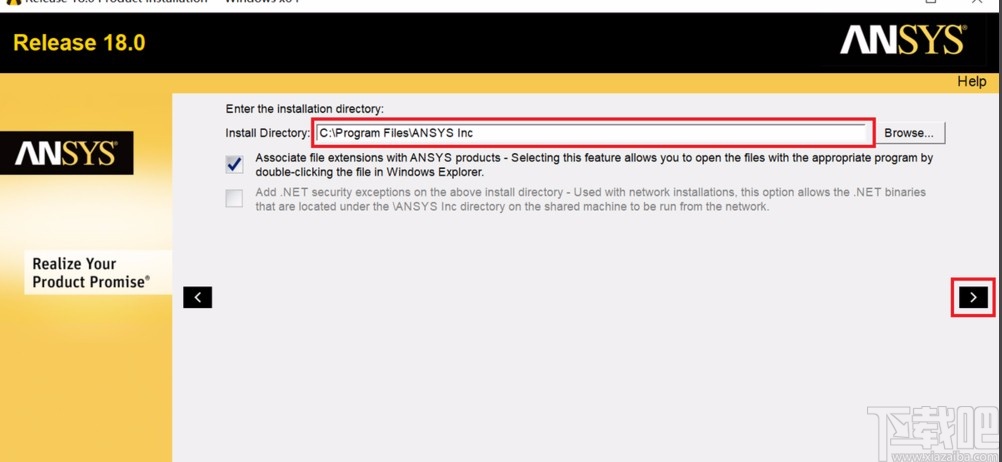 4.在安装目录设置页面中,我们点击界面右上方的“Browse”按钮设置好软件的安装位置,再点击页面右侧的箭头符号按钮进入到安装产品选择页面。