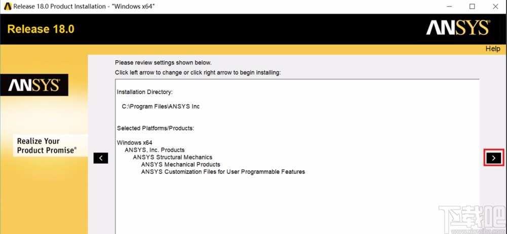 6.在准备安装页面中,我们检查了软件的安装位置以及安装产品等信息后,再点击页面右侧的箭头符号开始安装软件。