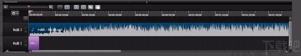 4.随后我们点击音频文件不动,用鼠标将其拖拽到下方的时间轨道上,如下图所示。