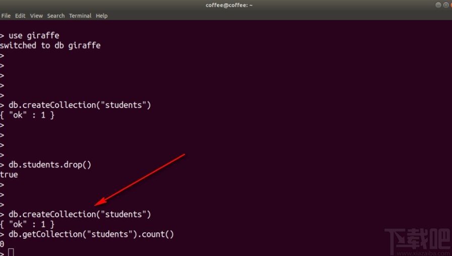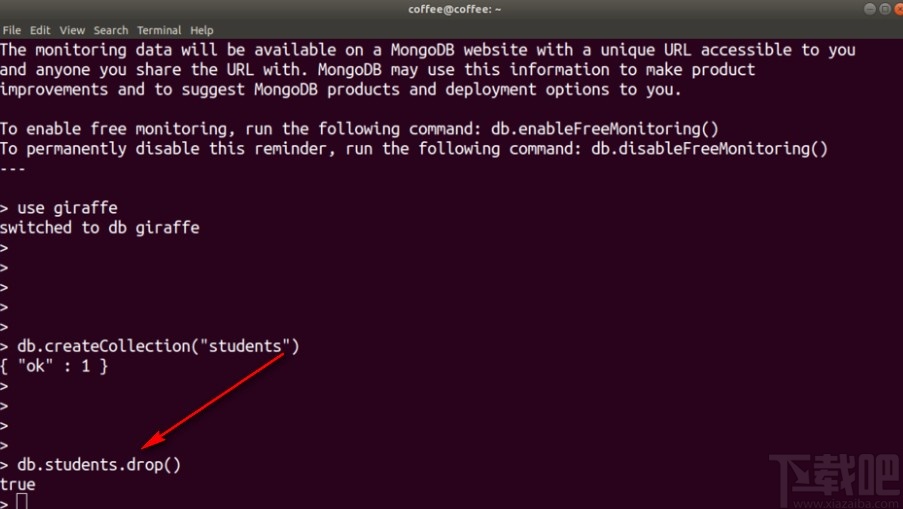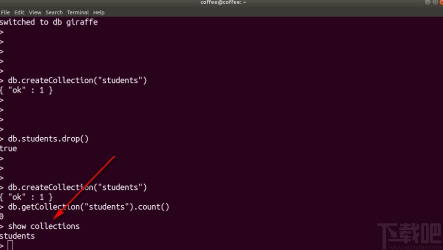 3.如果想要删除一些不需要的集合的话,就输入db.集合.drop(),其中的集合位置需要替换为想要删除集合的名称。
