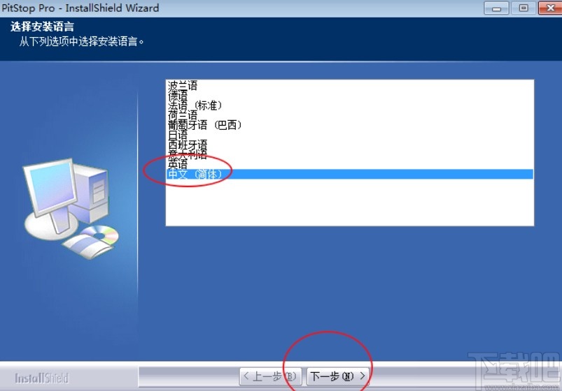 1.首先第一步我们打开下载好的pitstop插件文件夹之后,点击运行安装程序,来到下图所示的界面,需要对安装语言进行选择,选择之后点击下方的下一步按钮。
