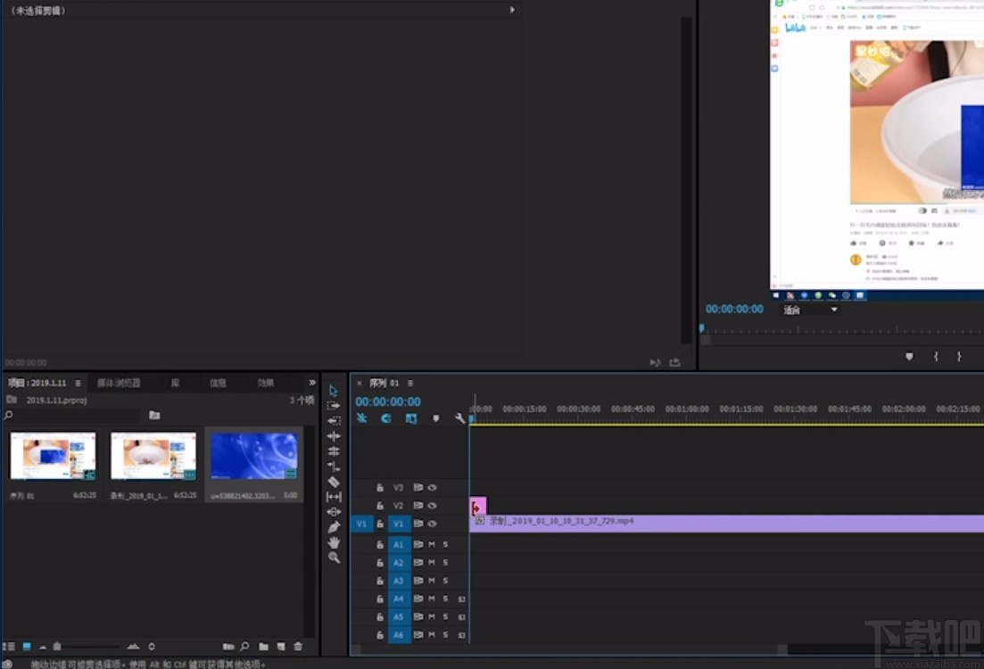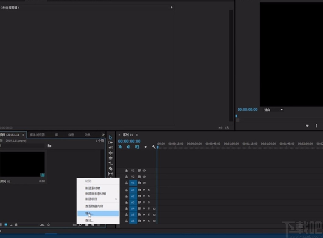 1.首先打开软件,在软件界面左下方的PR项目栏的空白处右击鼠标,界面上会弹出一个下拉框。