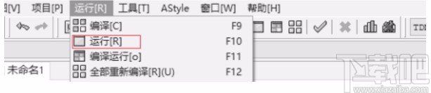 4.接下来我们在界面上方找到“运行”选项,点击该选项会出现一个下拉框,在下拉框中选择“运行”。
