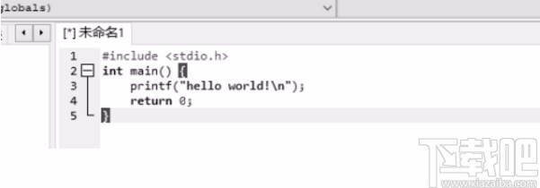 3.然后我们在代码编辑区输入下图所示的代码,这个代码是一个简单的输出hello world的代码。