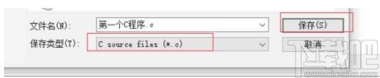 6.最后我们进入文件保存路径选择页面,在页面中点击“保存类型”下拉框,在下拉框中选择“C source files”选项,再点击“保存”按钮,即可成功新建C程序。