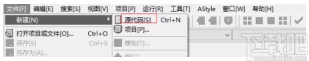 2.接着在文件选项下方会出现一个下拉框,我们在下拉框中选择“新建”选项,旁边会出现一个子下拉框,我们在子下拉框中选择“源代码”。