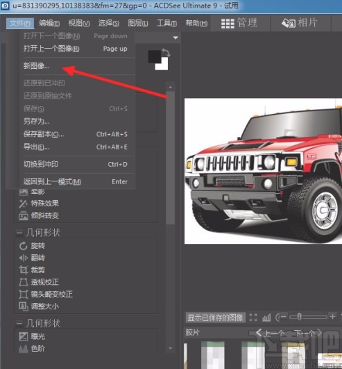 3.接着我们点击界面左上方的“文件”选项,其下方会出现一个下拉框,我们在下拉框中选择“新图像”。