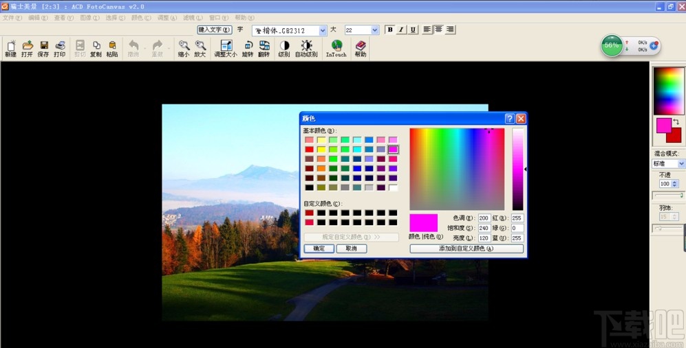 4.还可以点击界面右侧的颜色选项,界面上会弹出一个拾色器,我们在拾色器中选择文字颜色。