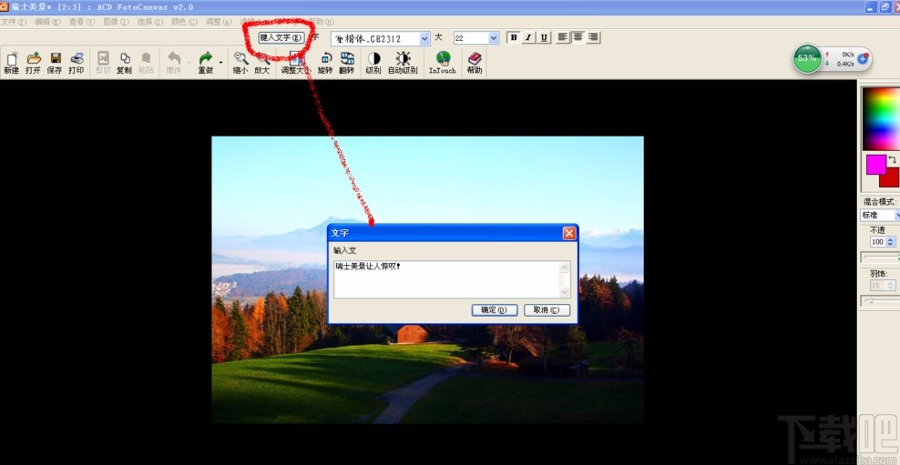 5.接下来我们点击界面上方的“输入文字”按钮,界面上会弹出一个文字窗口,在窗口中输入文字内容,再点击“确定”按钮即可。