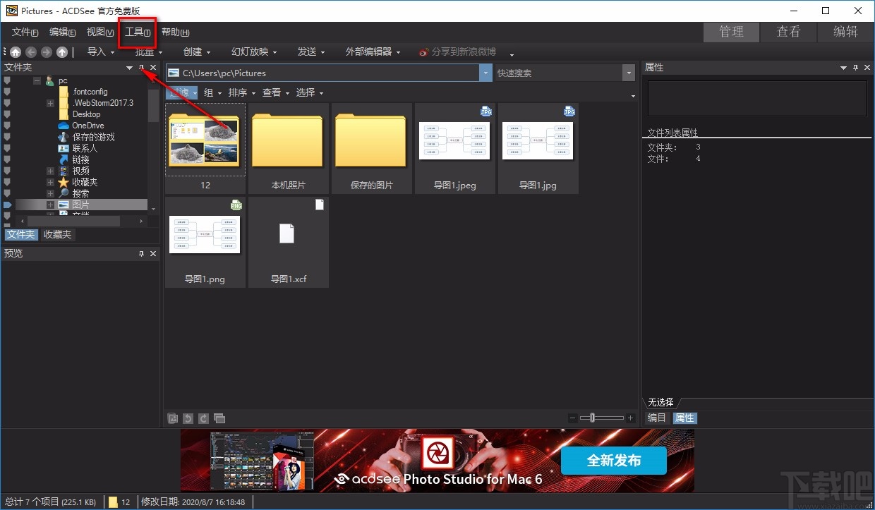 1.首先打开软件,我们在软件界面的菜单栏中找到“工具”选项,点击该选项,其下方会出现一个下拉框。