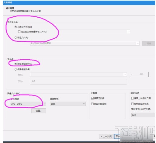 6.最后我们在窗口中设置好文件的输出目标文件夹、文件名、图像文件格式等参数,再点击“下一步”按钮就可以开始给图片添加水印了。