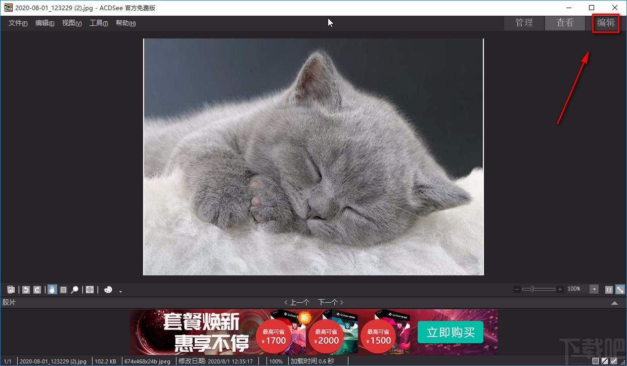 2.接着在界面右上角找到“编辑”按钮,点击该按钮,就可以进入到图片编辑模式。
