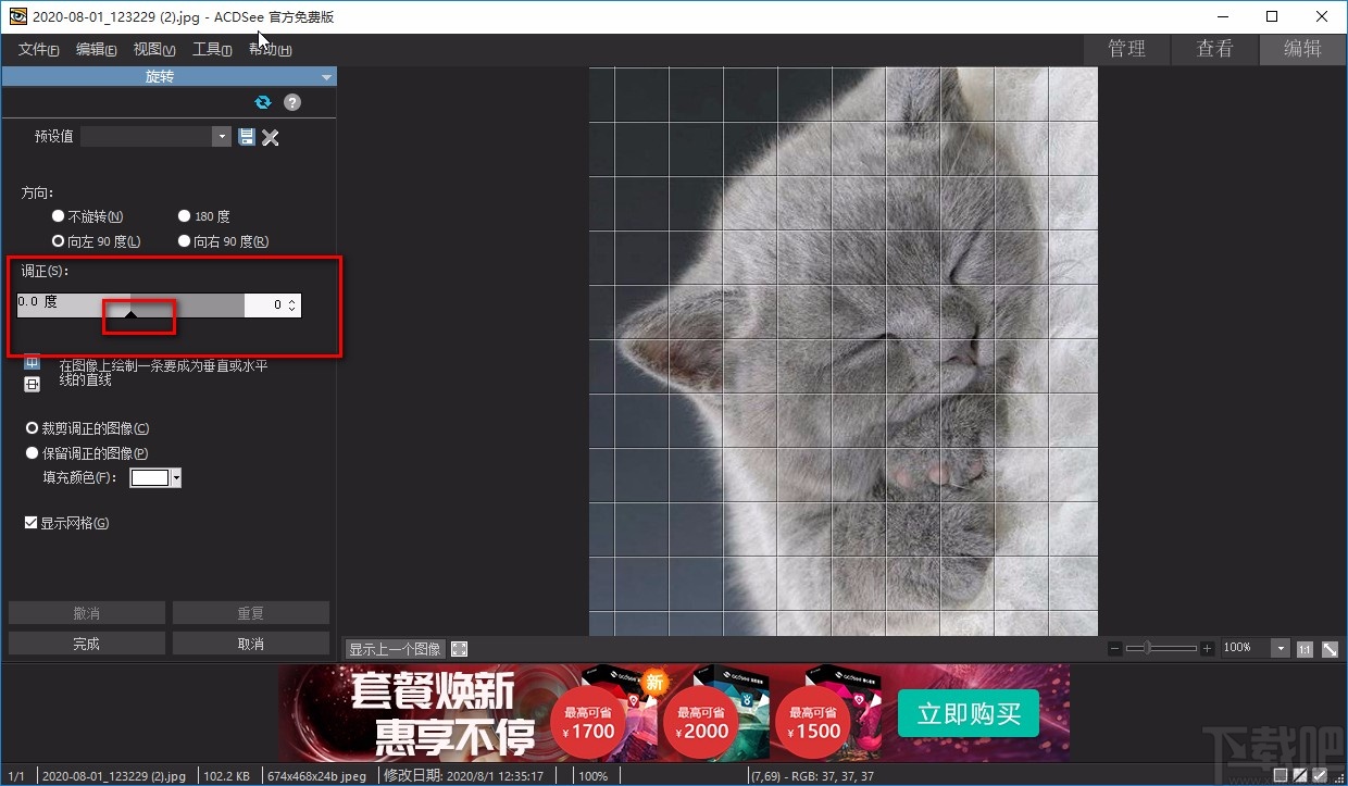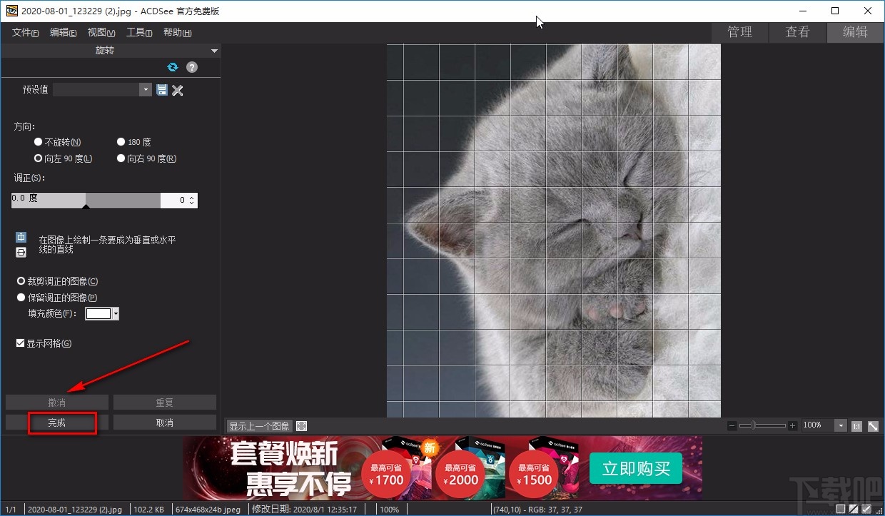 6.完成以上所有步骤后,我们在界面左下方找到“完成”按钮,点击该按钮就可以成功旋转图片角度了。