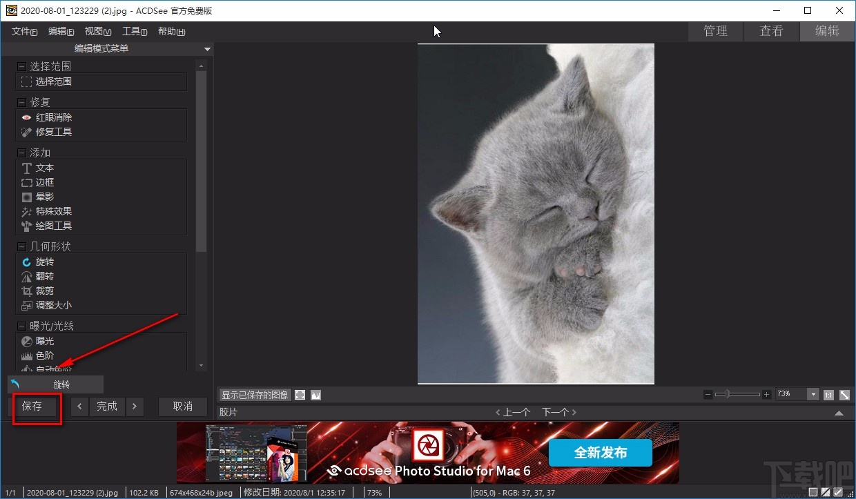 7.完成以上所有步骤后,我们在界面左下角找到“保存”按钮,点击该按钮就可以成功将旋转角度后的图片文件保存在电脑中了。