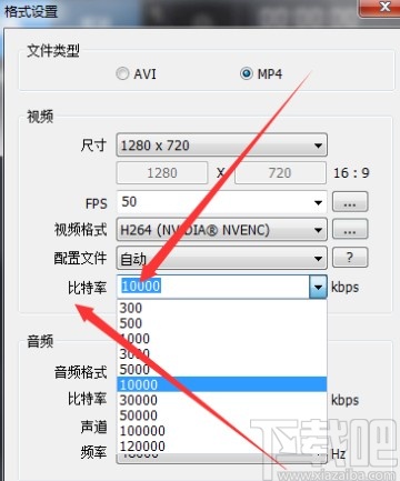 4.设置为码率优先之后在格式设置界面就会将画质选项编程比特率设置选项了,我们点击打开比特率的下拉列表,选择自己需要的码率值即可。