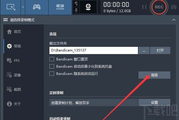 3.点击打开高级选项界面之后,在界面的选项模块,找到视频录制选项按钮,点击这个按钮进入到其中。