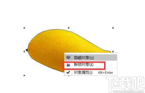 6.紧接着下一步我们使用鼠标右键点击框出来的图形,然后选择解锁对象这个选项解锁框出来的图形部分。