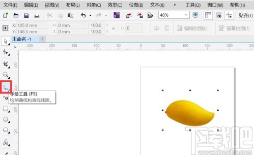 3.选择锁定对象之后,在左边找到手绘工具图标,然后选择钢笔工具,对图片中需要抠出的图形进行描边,抠出轮廓。