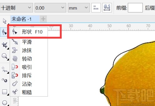 4.使用钢笔工具抠出的边缘线条不是很流畅,然后我们就选择点击左上角的形状工具图标,选择第一个形状选项。