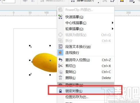 2.导入图片之后先右键点击图片,然后选择锁定对象选项,这样方便进行下一步的抠图操作。