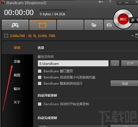 1.首先第一步我们打开软件之后,在左边选项中找到录像这个选项,然后点击录像选项进入到录像功能界面。
