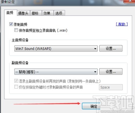 6.设置好录制音频设备的选项之后,我们点击下方的确定按钮,保存对音频设备的选择就可以了。
