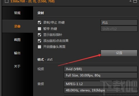 2.进入到录像功能界面之后,在这个界面中找到设置按钮,点击设置按钮可以进入到录像设置界面。