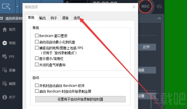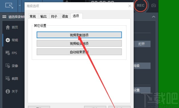 3.点击切换到选项设置模块之后,可以看到有一个“视频录制选项”这个按钮,点击可以进入到视频录制界面。
