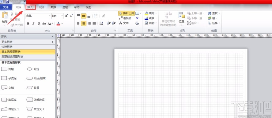 1.首先打开软件进入到绘图界面,我们在界面左上方找到“插入”选项,点击该选项进行下一步操作。