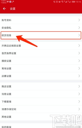 3.点击进入到设置界面之后,在设置界面中找到收货信息这个选项,点击进入到收货信息的编辑界面。