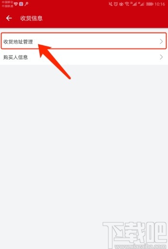 4.在收货信息编辑界面找到收货地址管理选项,点击进去即可对收货地址进行编辑。