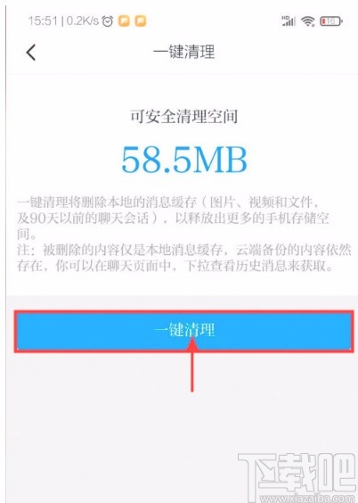 6.最后在一键清理页面中,我们在页面上找到蓝色的“一键清理”按钮,点击该按钮就可以清除缓存了。