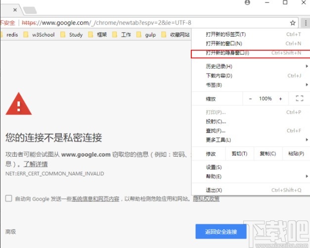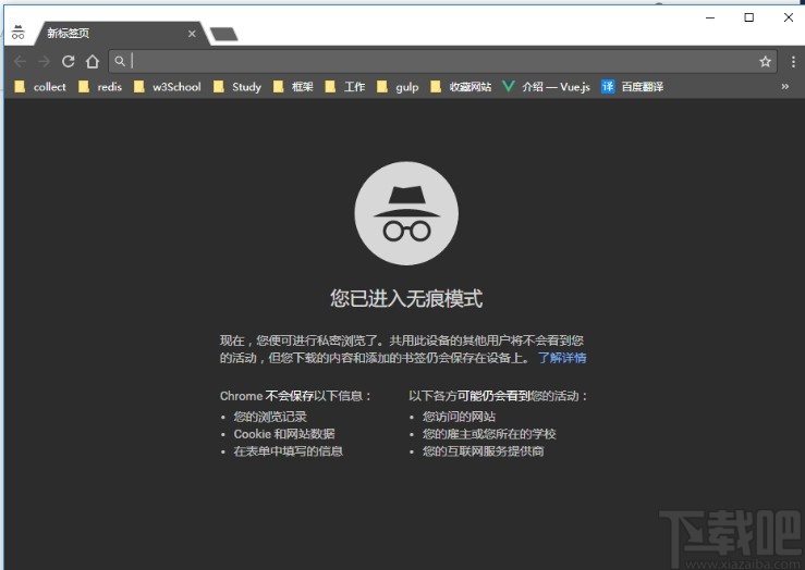 3.点击这个打开新的隐身窗口选项之后就会打开一个新的标签页了,并且是无痕模式下的标签页。