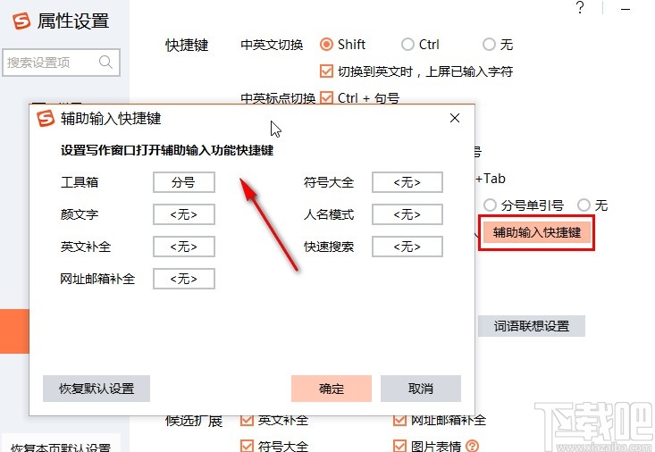 5.另外我们点击辅助输入快捷键按钮可以打开设置辅助输入快捷键的界面,根据用户自己的需求来进行选择即可。