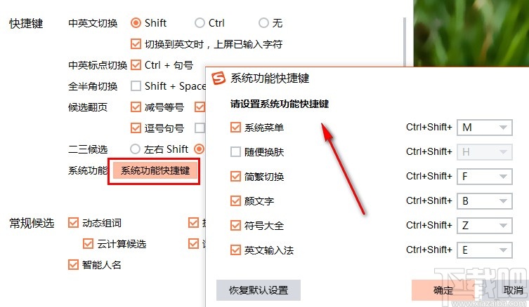 6.点击系统功能快捷键按钮的话可以对系统功能快捷键进行设置,用户也是根据自己的需求来设置这些快捷键内容即可。