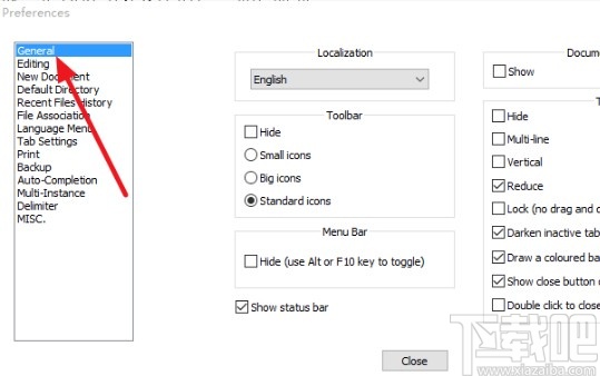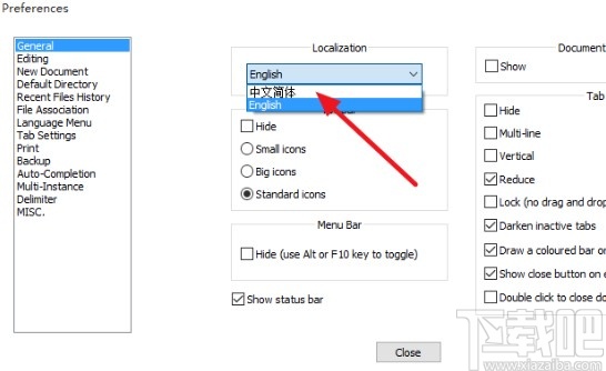 4.之后在常规设置界面有一项localization模块,表示界面语言,我们点击其中的下拉框选择为中文简体这个语言选项。