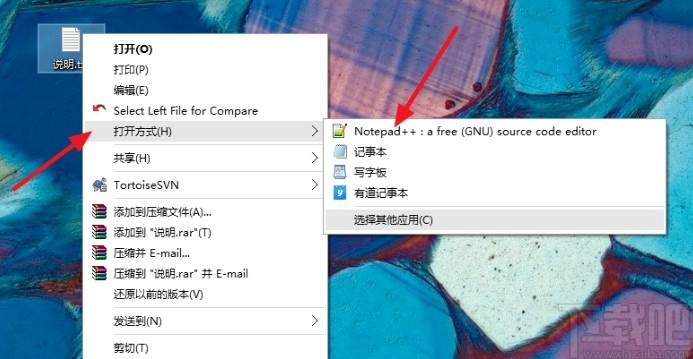 1.首先第一步我们找到任意一个文本文件,右键点击之后选择打开方式为notepad++软件打开。