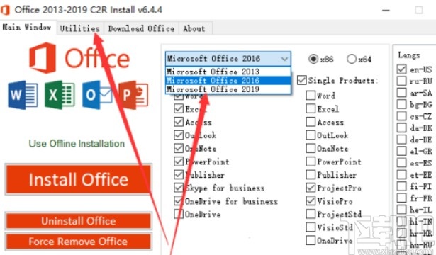 4.点击这个按钮之后在出现的界面中我们点击选择为2019版,然后切换到Utilities这个选项卡界面。