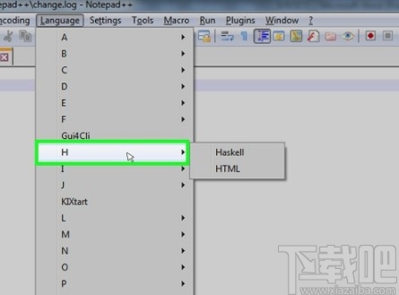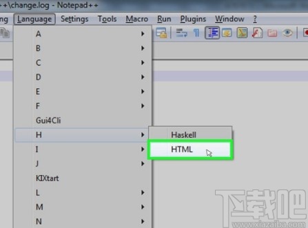 2.点击打开这个下拉菜单之后,我们可以看到有H这个选项,选择之后在右边的子菜单中可以看到选择HTML。