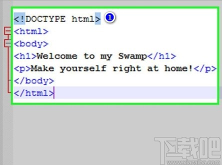 4.一个HTML文件的基本代码包括序号1位置所示的头部,以及HTML标签、body标签、h1标题标签、p文本标签,每一个标签都有对应的一个头标签和尾标签,这样一个HTML的基本代码就完成了。