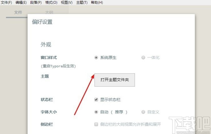 6.在打开的偏好设置界面,可以看到主题模块有一个“打开主题文件夹”的功能按钮,然后我们点击这个按钮。