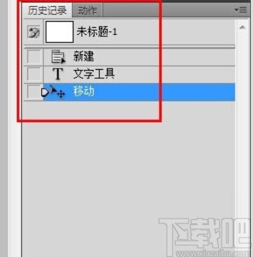 3.点击这个历史记录选项之后,在左边打开的历史记录窗口中就会出现操作过的一些选项了,比如新建、文字工具的使用等,都是记录在其中的。