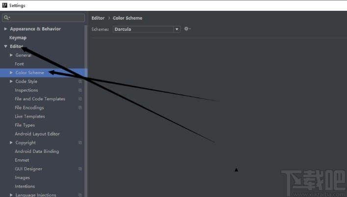 4.点击切换到编辑设置界面之后,在它的下面可以看到有Color Scheme这个选项,点击之后即可进入到相应的设置界面。