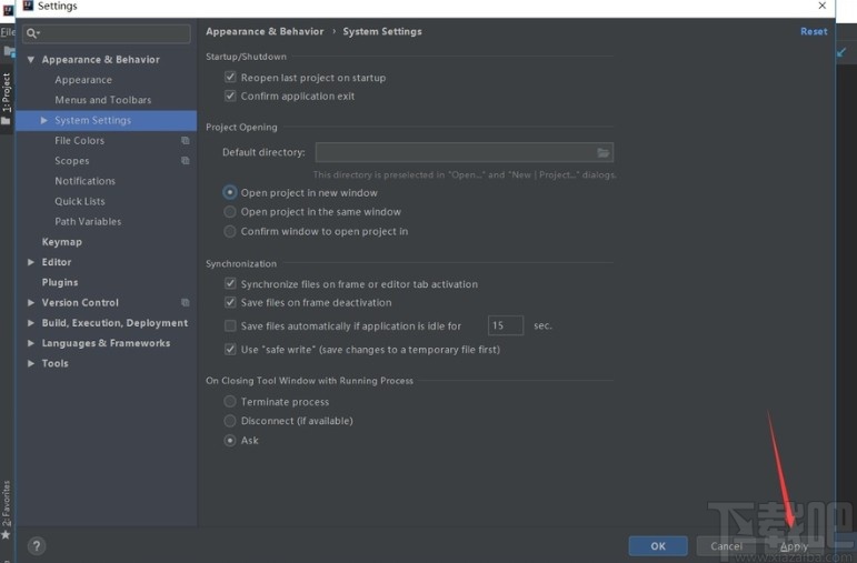 6.接下来我们点击这个设置界面右下角的Apply这个应用按钮,保存并应用我们修改过的设置。