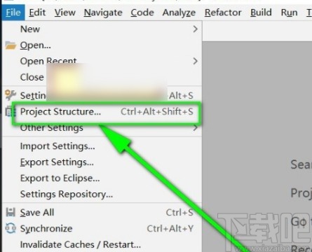 1.首先我们打开软件之后,点击左上角的文件选项file,然后在打开的菜单列表中找到Project Structure选项并点击。